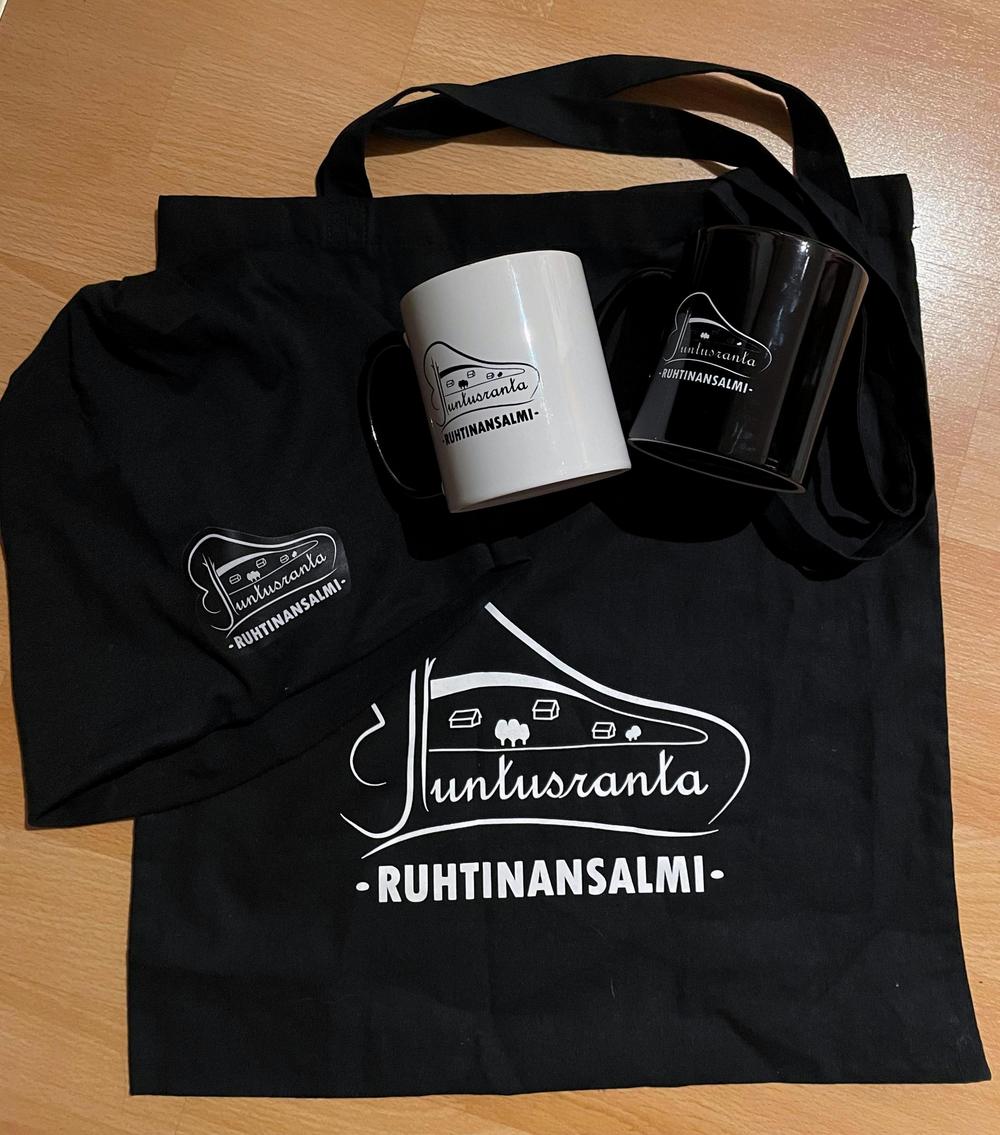 Voit hankkia itsellesi tai lahjaksi Juntusranta-logolla varustettuja mukeja, T-paitoja, kangaskasseja ja pipoja sekä Ruhtinansalmi-tekstillä varustettuja lippalakkeja. Tuotteita myydään kyläyhdistyksen järjestämissä tapahtumissa. Toimitamme tuotteita myös postitse. Katso kuvat sivun alaosasta.